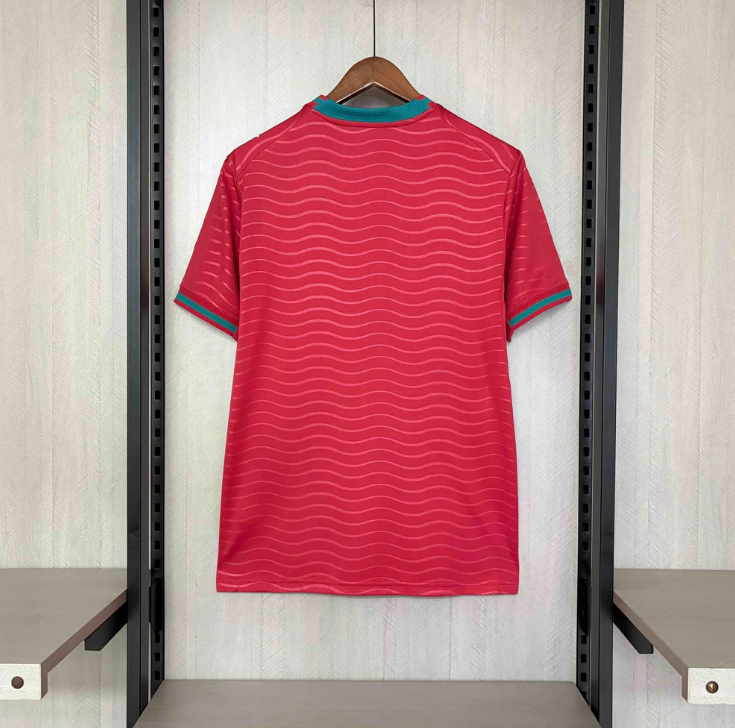 Show your pride for Seleção das Quinas with the Portugal Home Jersey World Cup 2026. Designed in Portugal’s iconic deep red, this jersey features a subtle wave pattern graphic inspired by the nation’s football heritage. Accented with green detailing on the V neck and sleeve cuffs, it delivers a bold yet elegant match day look.
